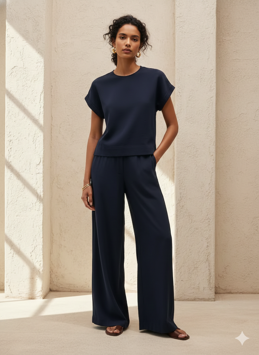 Refined, versatile, and quietly luxurious — the Summer Two-Piece Set is designed for women who appreciate understated sophistication. Crafted with a fluid, premium fabric that drapes beautifully, this matching set blends contemporary tailoring with relaxed comfort.